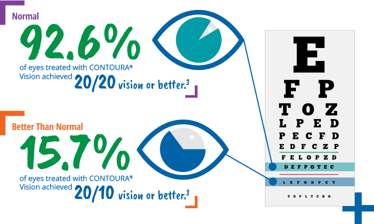 Because Contoura® Vision uses topography-guided technology, it only targets the parts of your cornea that need to be corrected.1 This makes it one of the most accurate and safest types of LASIK around. It has been shown to reduce visual disturbances, such as halo and glare, in patients who had worn glasses or contact lenses before having Contoura® Vision.2